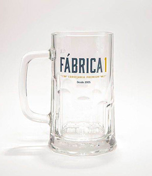 Robusta e imponente, a Caneca Bavaria é feita de vidro e perfeita para quem aprecia as cervejas da Fábrica 1 com presença e tradição.